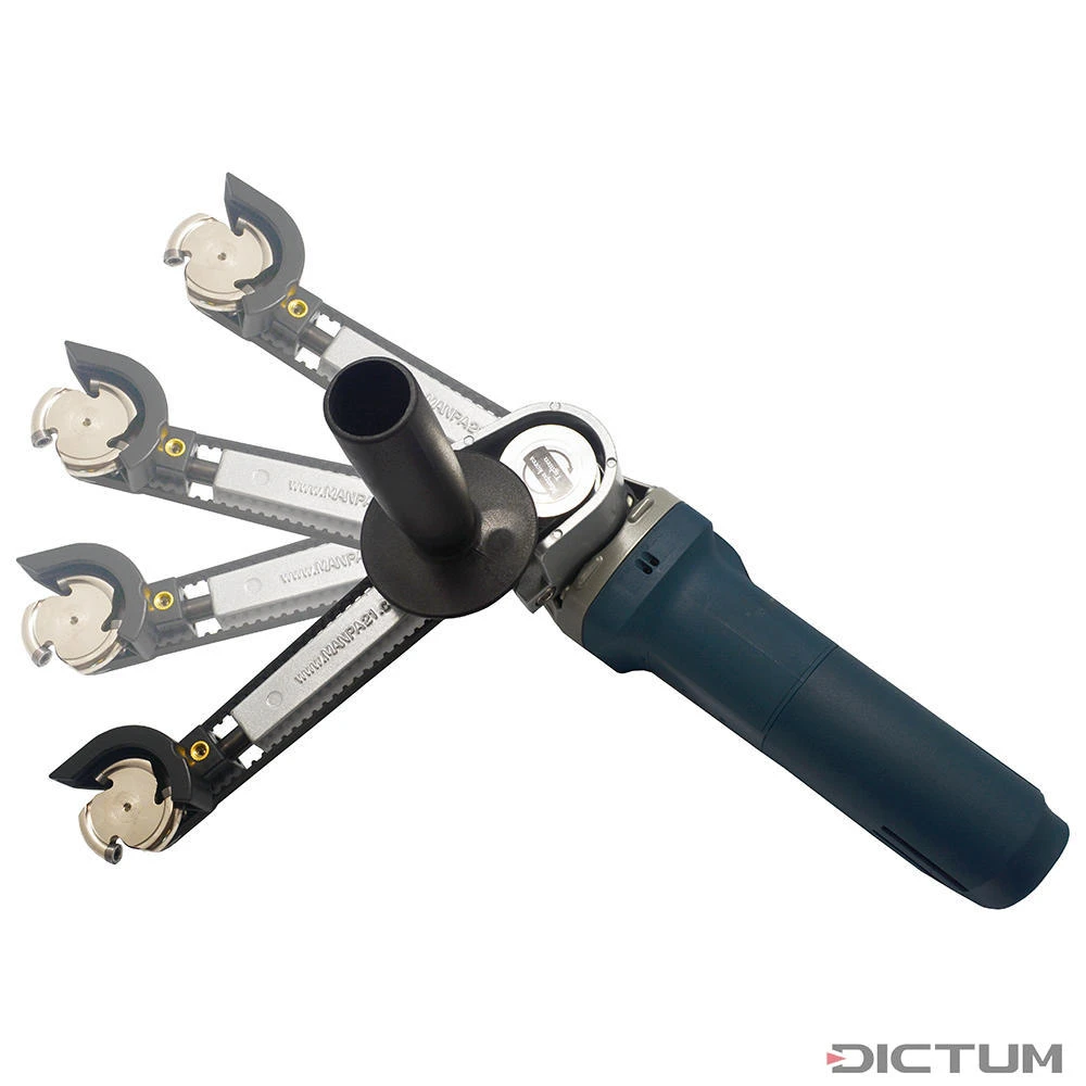Le Belt Cutter et le Multi Cutter forment le cœur du système MANPA Power Carving. Un bras supplémentaire pour les meuleuses d’angle standard de 115 / 125 mm qui convient à presque tous les travaux de sculpture. Le bras peut être étendu de 200 mm à 348 mm, l’angle peut être modifié de 90˚ à 180˚. Différents disques de fraisage, à râper et de meulage de diamètre 2 à 4 pouces sont idéaux pour une utilisation rapide sur les dispositifs de sculpture Belt Cutter et Multi Cutter de MANPA, sans conversions importantes. Pour un enlèvement grossier de matière, des travaux de précision ou un ponçage de finition. Grâce au Cutter MANPA et à ses accessoires, vous pouvez faire face à tous les travaux de sculpture, que vous soyez débutant ou professionnel.