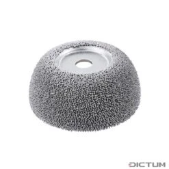 Les disques-râpes en forme de tasse à profil presque semi-circulaire sont idéaux pour la finition de surfaces ou de bols, de creux en forme semi-ronde ou pour le façonnage dans le projets de tournage et de sculpture. Cinq diamètres disponibles et trois granulométries différentes offrent un large éventail d’applications. Plusieurs possibilités de serrage à l’aide d’accessoires optionnels sur perceuse, meuleuse droite, meuleuse angulaire, meuleuse angulaire à long cou Merlin2, Mini-Carver Arbortech, etc. permettent une utilisation optimale et efficace des disques-râpes en forme de tasse. Plage de vitesse recommandée : 5 000-15 000 tr/min. Un insert en caoutchouc disponible comme accessoire permet également d’améliorer la stabilité et la régularité de fonctionnement des disques-râpes en forme de tasse.