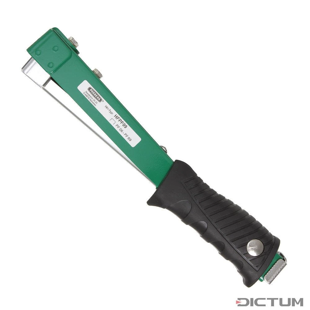 Ce marteau agrafeur a un système de chargement fiable et précis qui garantit une grande longévité avec le solide carter métallique. Ce marteau agrafeur est le compagnon idéal sur le chantier : il demande très peu de force, il tient sûrement en main et on peut le démonter sans outils. Convient aux bardeaux, au papier goudronné, aux isolations etc. Pour les agrafes de 6 à 9 mm de longueur.