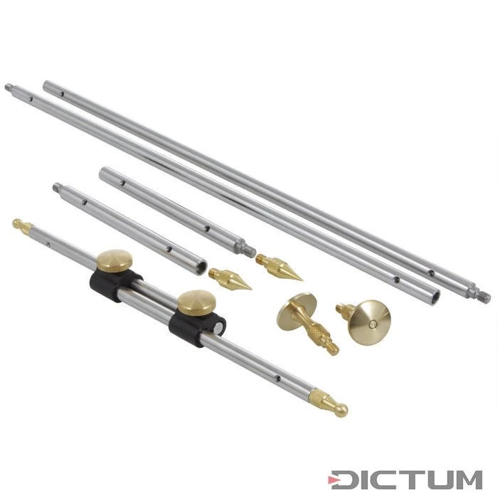 La règle à écartements minimise les erreurs de mesure dues au balayage et à la transmission des écartements. En balayant les diagonales, on peut contrôler la rectangularité, p. ex. sur les tiroirs et les corps. Les bras de guidage peuvent être rallongés par deux paires de barres supplémentaires. Y compris trois paires de pointes en laiton. Embouts pointus pour des mesures diagonales dans les zones en coin. Embouts ronds pour les mesures des écartements intérieurs. Embouts en têtes de champignon pour les mesures des écartements extérieurs.