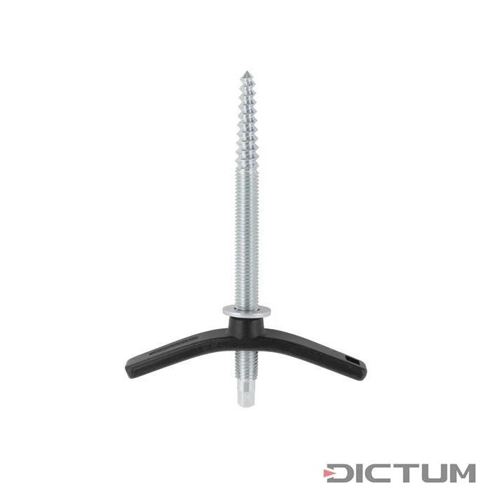 Pour serrer des pièces sur une potence ou un établi. La pointe au pas de vis conique est vissée dans un trou préforé de la pièce au moyen d’un tube carré à l’extrémité. L’écrou de serrage carré correspondant fait office de clé de Berne. La vis amorcée dans la pièce est insérée dans la potence ou l’établi via un préforage ou un trou oblong. En tournant l’écrou de serrage massif forgé, la pièce est tirée contre la zone d’appui. L’objet peut ainsi être tourné dans le sens de travail et être à nouveau fixé.